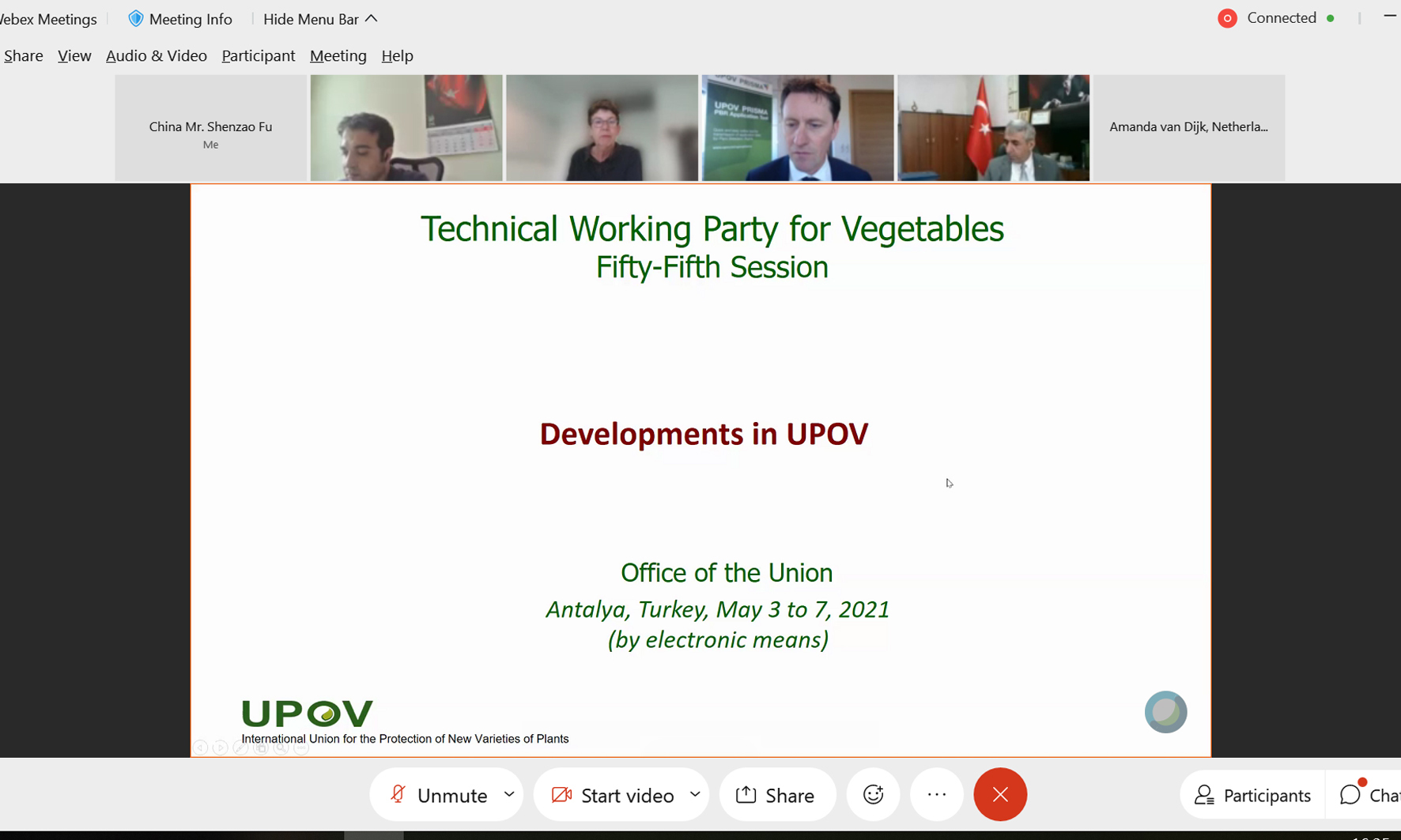 近日,国际植物新品种保护联盟(UPOV)第55届蔬菜技术工作组(TWV)会议在土耳其安塔利亚召开。受疫情影响,本届会议继续采用视频会议方式召开。