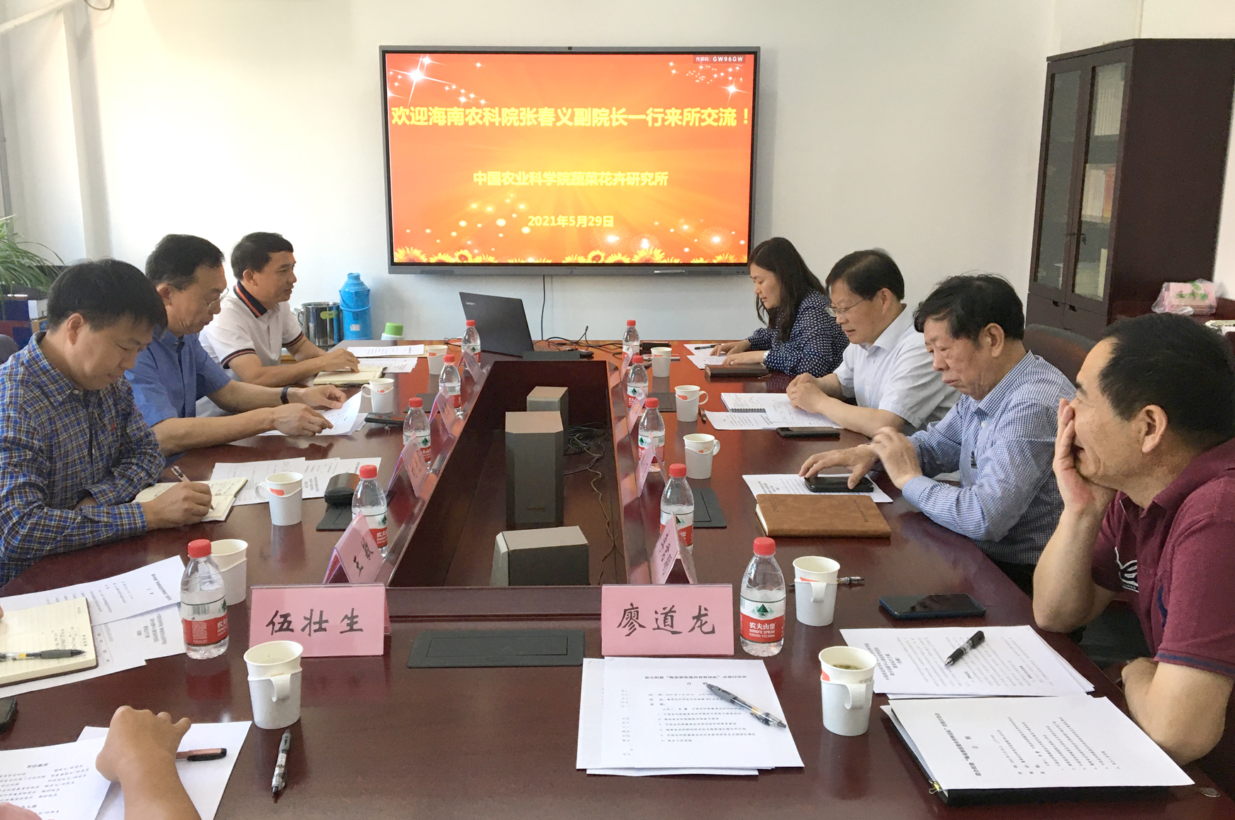5月29日,海南省农科院副院长张春义、三亚研究院常务副院长刘光亮等一行到访蔬菜花卉所,就推动双方开展联合创新共同组建番茄研究团队进行座谈交流。副所长张圣平、大宗蔬菜产业技术体系首席科学家杜永臣等参加会议,科研处处长李蕾主持会议。