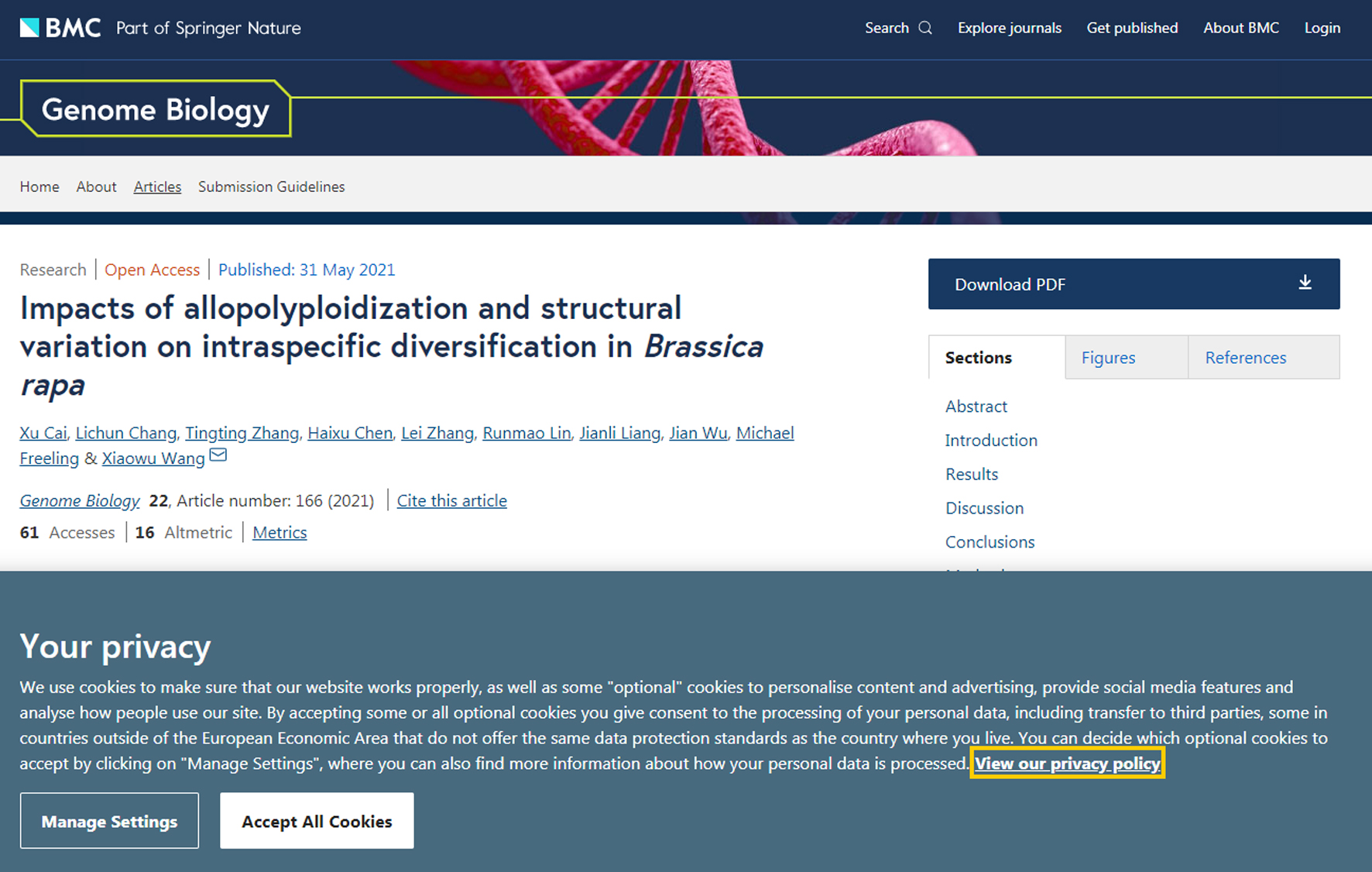 2021年5月31日,Genome Biology(IF3y=12.683)在线发表了麻豆社 王晓武团队完成的题为“Impacts of allopolyploidization and structural varia...
