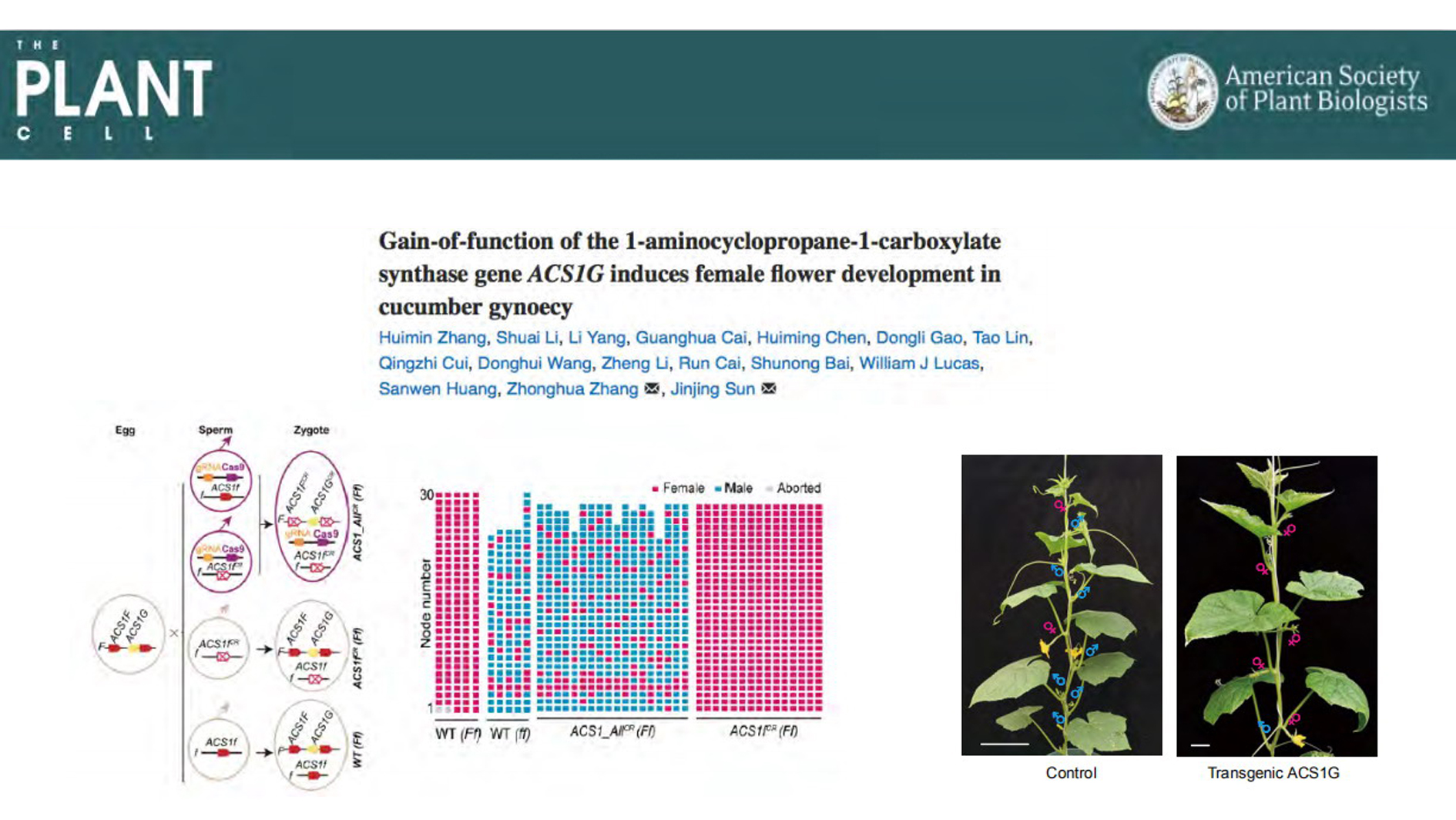 近期,麻豆社 功能基因课题组首次证实了黄瓜中显性全雌基因(Female)编码乙烯合成途径中的关键酶ACS1G,并深入研究了其作用机制。相关研究内容《Gain-of-function of the 1-aminocyclo...
