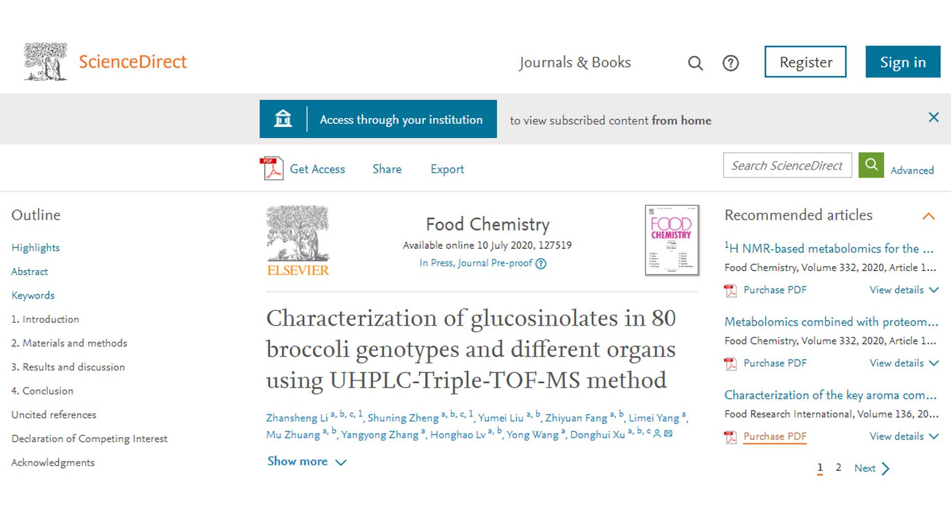 7月10日,麻豆社 甘蓝青花菜课题与质量安全课题的研究成果:“Characterization of glucosinolates in 80 broccoli genotypes and different organ...
