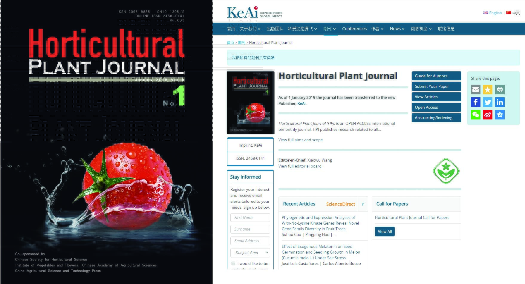 • 2019-03-13 《园艺学报》英文版《Horticultural Plant Journal》被SCI收录