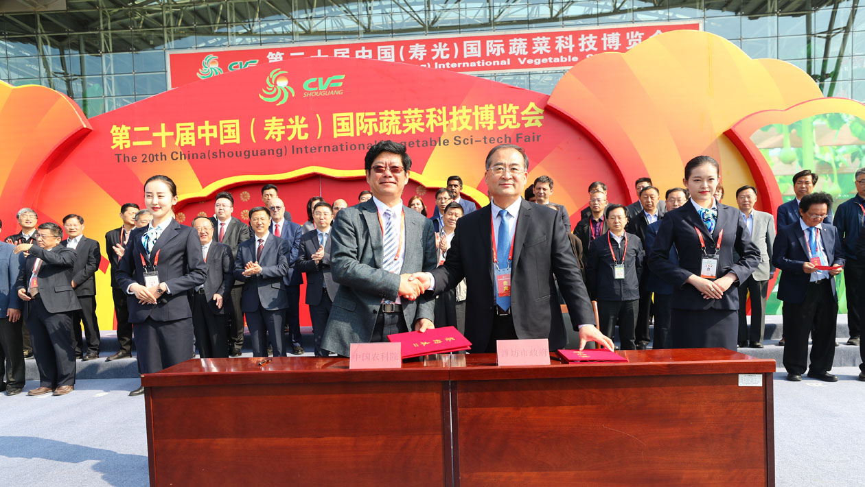 4月20日,在第二十届中国(寿光)国际蔬菜科技博览会开幕式上,麻豆社 学院副院长梅旭荣、潍坊市人民政府副市长马清民为“麻豆社 学院寿光蔬菜研发...